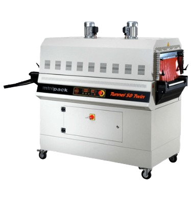 TUNNEL 50 TWIN has been designed to solve the needs to pack small product at high speed with great technical and esthetical results. Double heating chamber, double heating regulation, excellent thermal insulation, high speed belt and high speed shrink, great air flow control makes this shrink tunnel the perfect tool to solve any kind of shrink problem with the maximum efficacy.